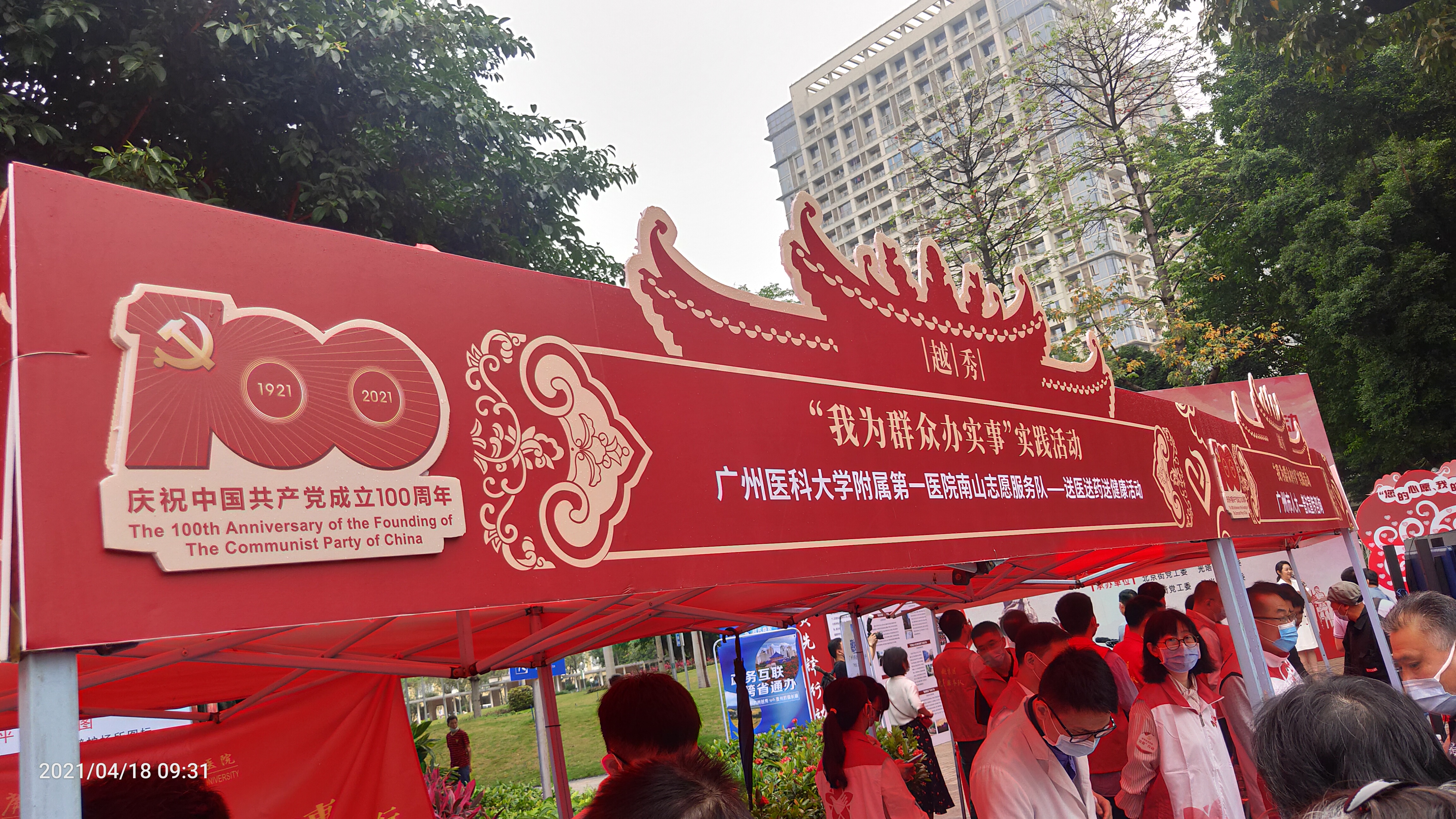4月18日,南山志愿服务队在海珠广场开展志愿服务,为上百名群众提供疫苗接种咨询、消化内科、心内科、外科、骨科、血压血脂测量等健康咨询服务。