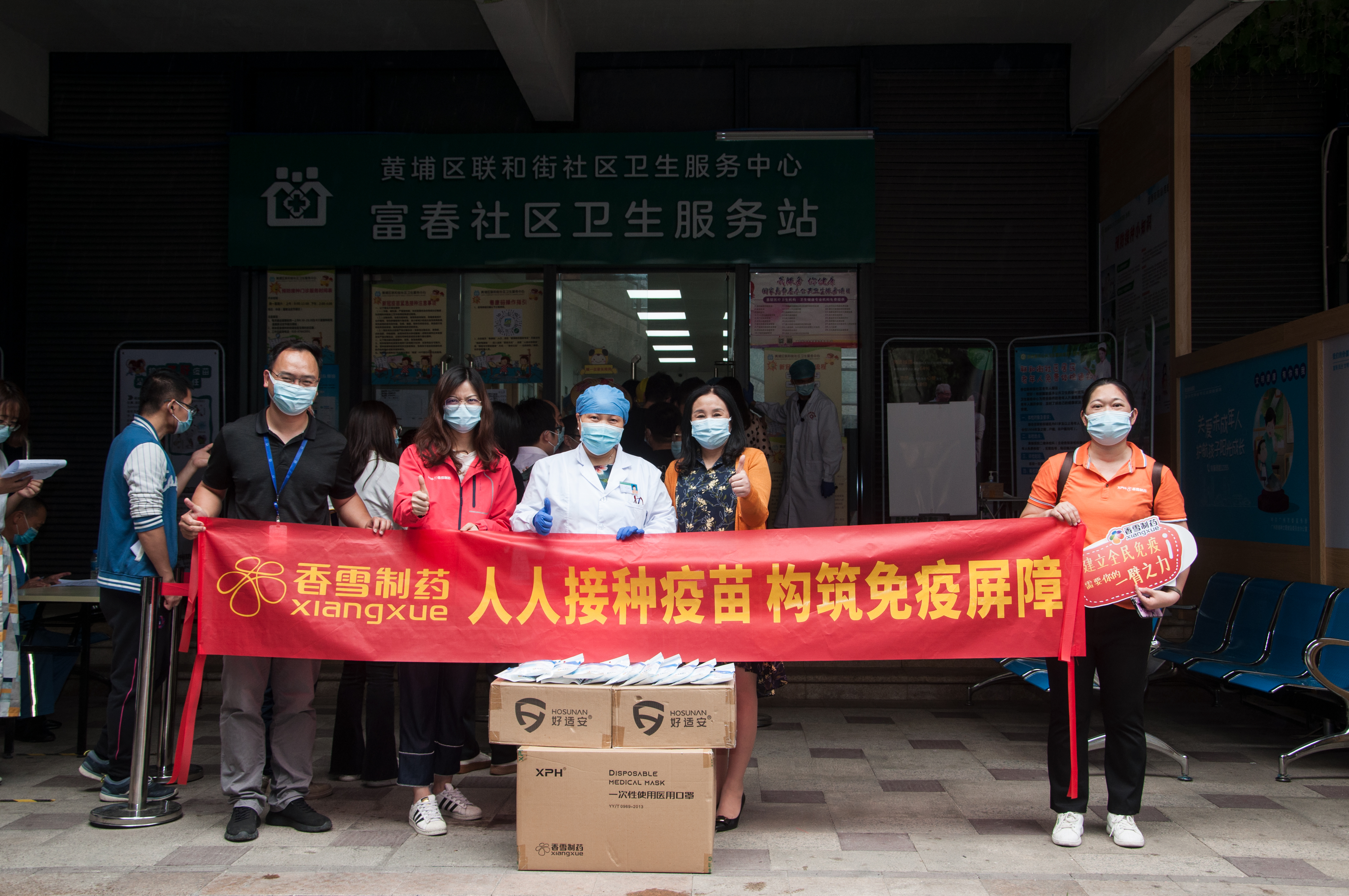4月20日,在接种疫苗现场,bevictor伟德为接种疫苗的群众免费派发一次性医用口罩,为群众健康保驾护航。