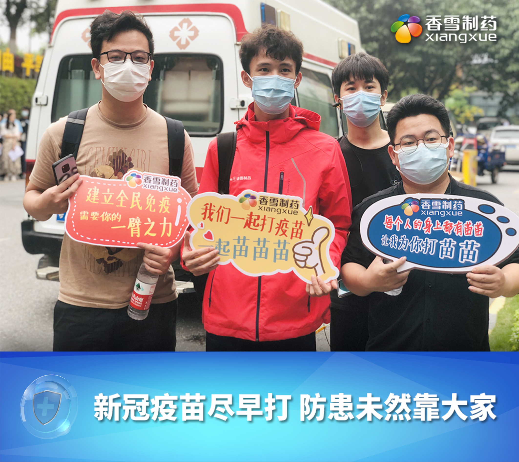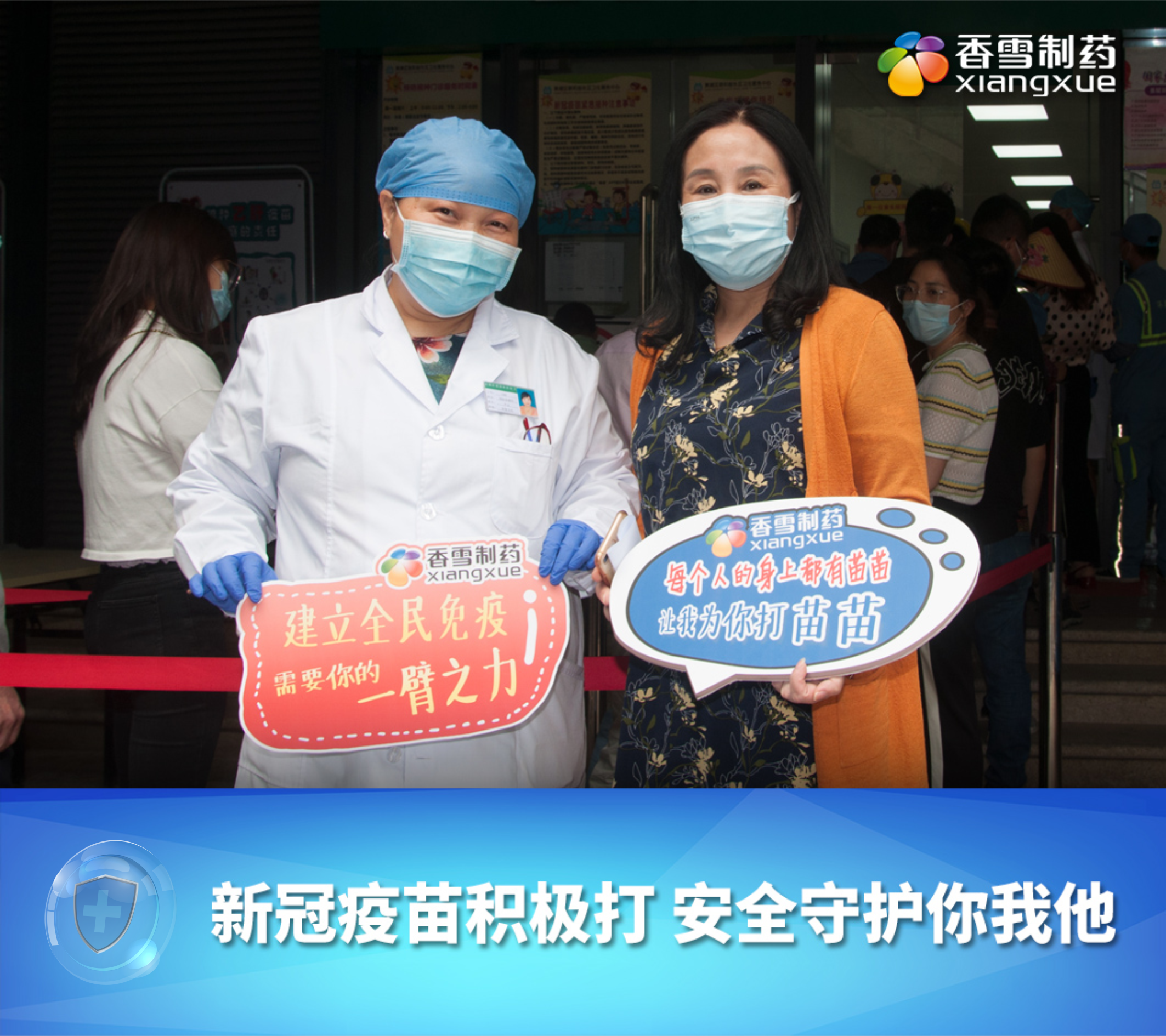 “我们都相信疫苗能保护我们,能保护我的家人,我们一起打疫苗,贡献自己的一臂之力”,为祖国疫情防控加油!”