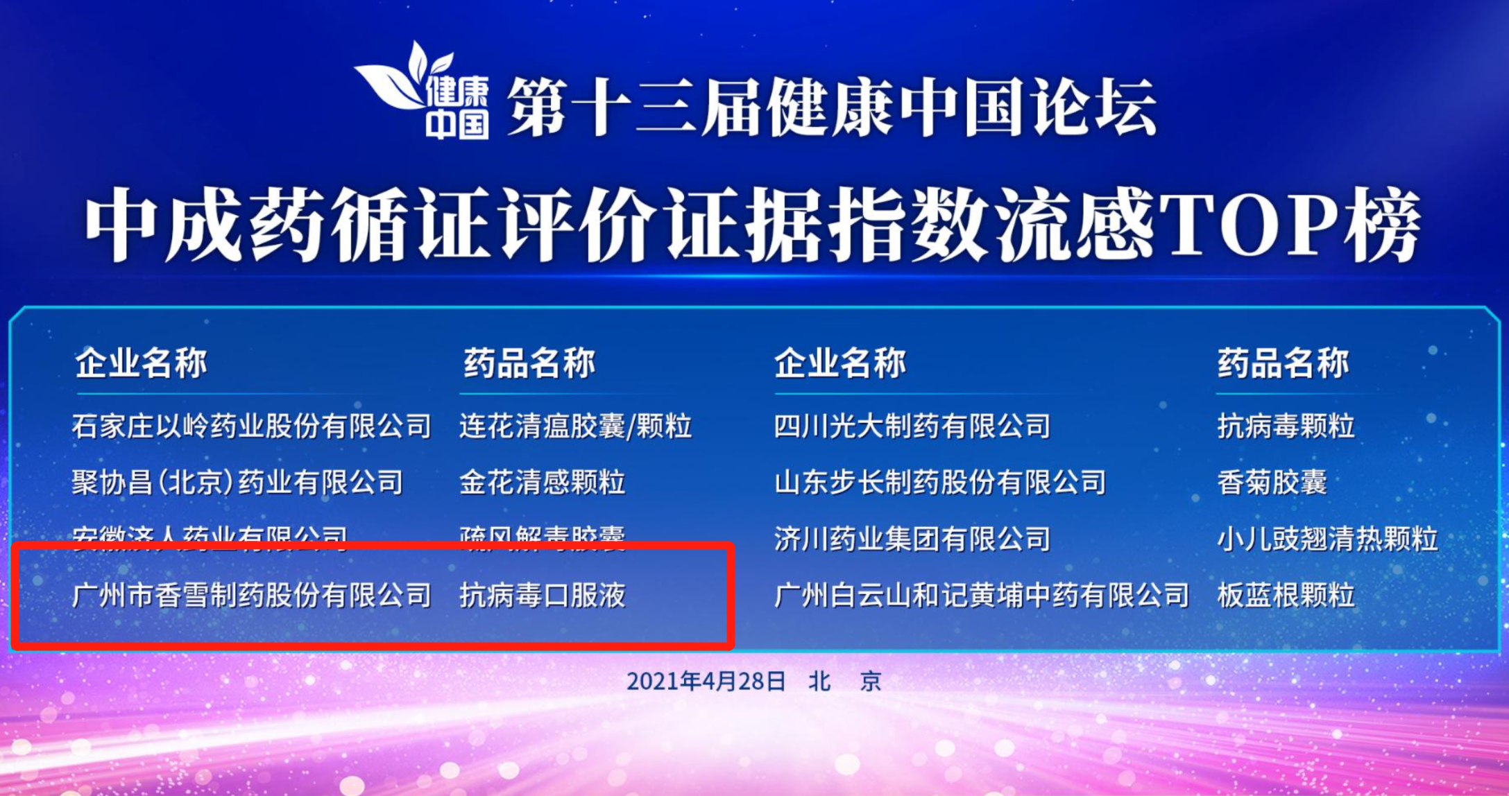 新机遇、新业态、新趋势。4月28日,由人民日报健康客户端、健康时报主办的第十三届健康中国论坛在北京举行。论坛围绕“加强循证中医药研究,推动中医药事业高质量发展”主题进行研讨,首次发布“中成药循证评价证据指数流感TOP榜”,bevictor伟德抗病毒口服液荣登榜单,再次证明bevictor伟德抗病毒口服液治疗流感的临床优势。