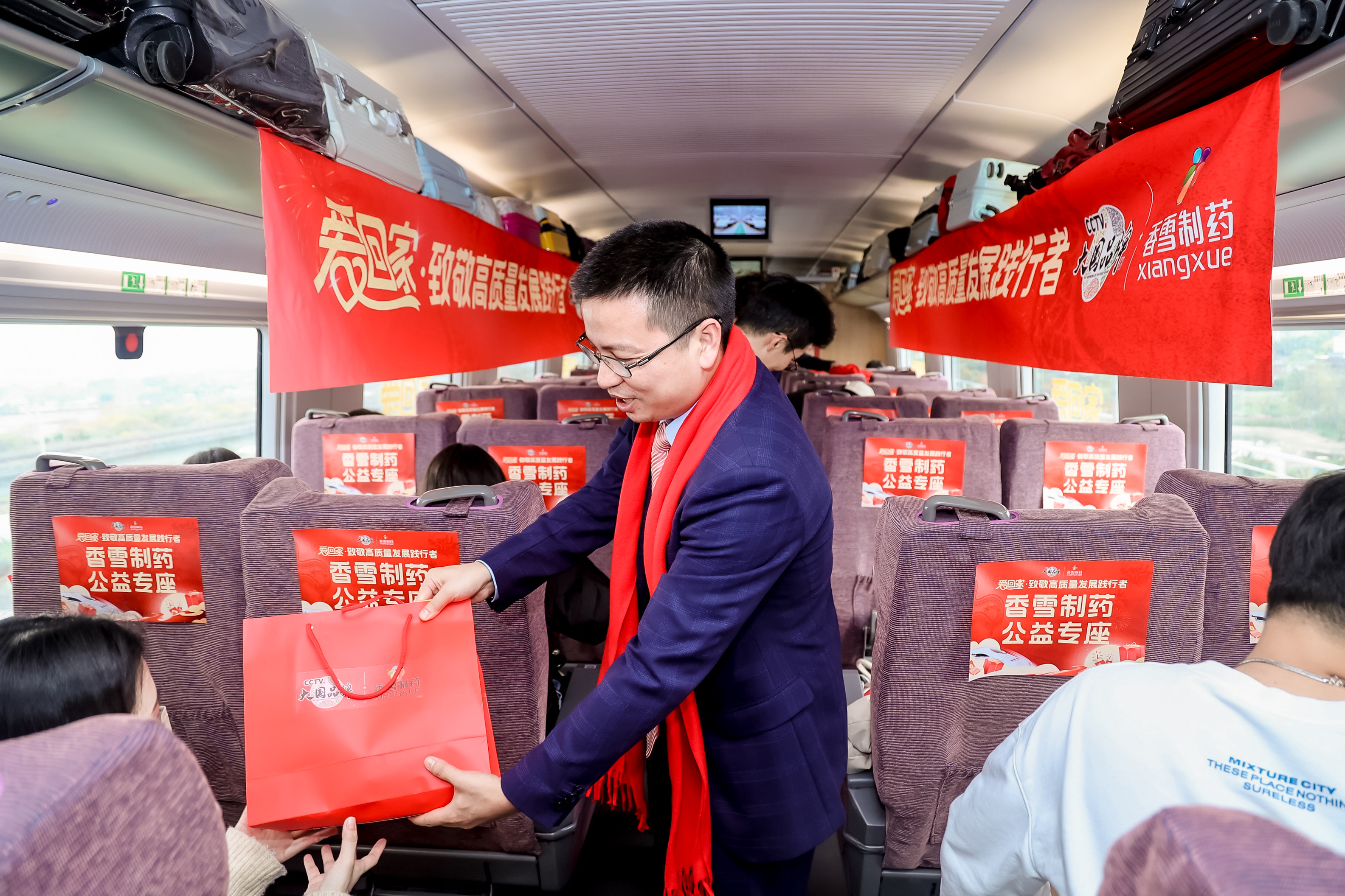 值得一提的是,爱心专列发车当天正值南方农历小年夜,主办方精心布置了车厢,满溢着喜庆的窗花,象征团圆与美好的中国结,以及龙年主题的对联点缀其间,红色的视觉元素,让乘坐高铁的践行者们感受到浓郁的过年气氛,被爱和温暖所包围。bevictor伟德党委书记朱学艺在现场进行“金龙送福”挥春活动,将满满的福气和浓浓的祝福送给大家。