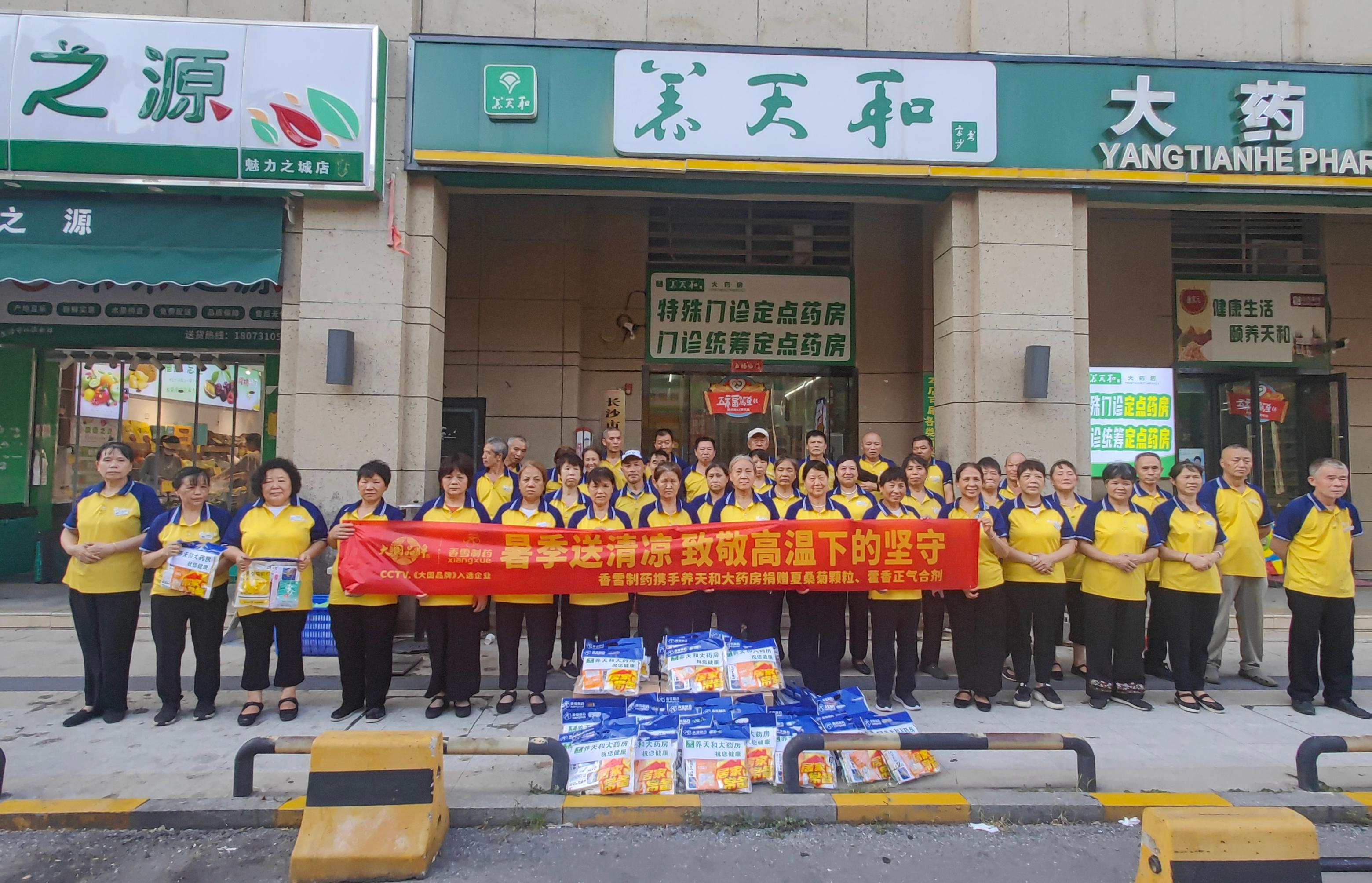 8月9日,bevictor伟德携手养天和大药房,向长沙市雨花区黎托街道幸福里社区的环卫工人送上了夏桑菊颗粒等消暑清凉物资,为在高温下辛勤工作的环卫工人们带来了一丝清凉和关怀。