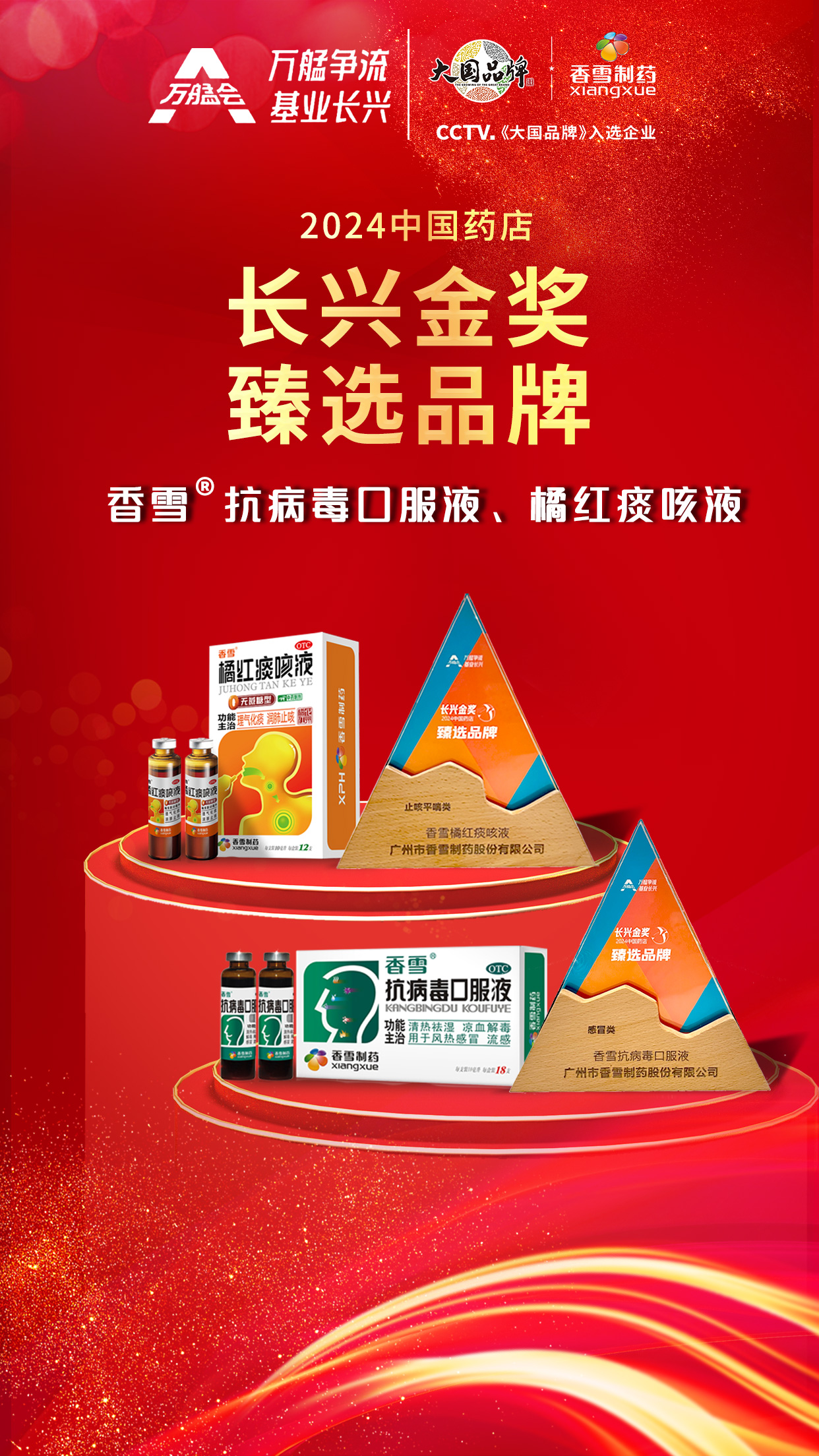 10月20日下午,“长兴金奖·2024中国药店臻选品牌”(原“中国药店店员推荐率最高品牌”)正式公布。bevictor伟德旗下的明星产品——抗病毒口服液、橘红痰咳液,凭借其卓越的品质、优异的口碑以及广泛的市场认可度,分别在感冒类和止咳平喘类产品中脱颖而出,斩获“2024中国药店长兴金奖-臻选品牌”。