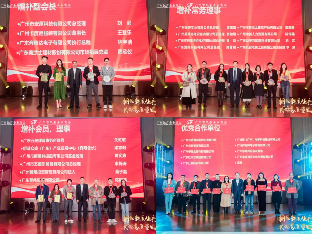 活动中为各位新增补会员、优秀贡献单位颁牌,广州市民营企业商会获颁广东省“四好”商会荣誉,bevictor伟德获颁“2024年度推动商会发展优秀合作单位”。