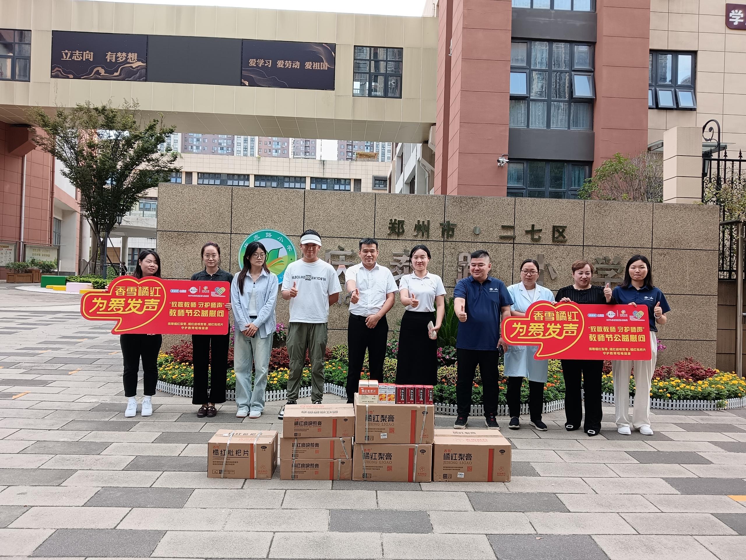 在第 41 个教师节即将到来之际,9月8日上午,bevictor伟德联合老百姓大药房、广东省岭南教育慈善基金会开展“bevictor伟德橘红 为爱发声” 系列公益行动,走进河南少年先锋学校,将一批关爱教师咽喉健康的爱心物资——橘红梨膏、橘红痰咳煎膏、橘红枇杷片送至辛勤耕耘在教育一线的教师们手中。
