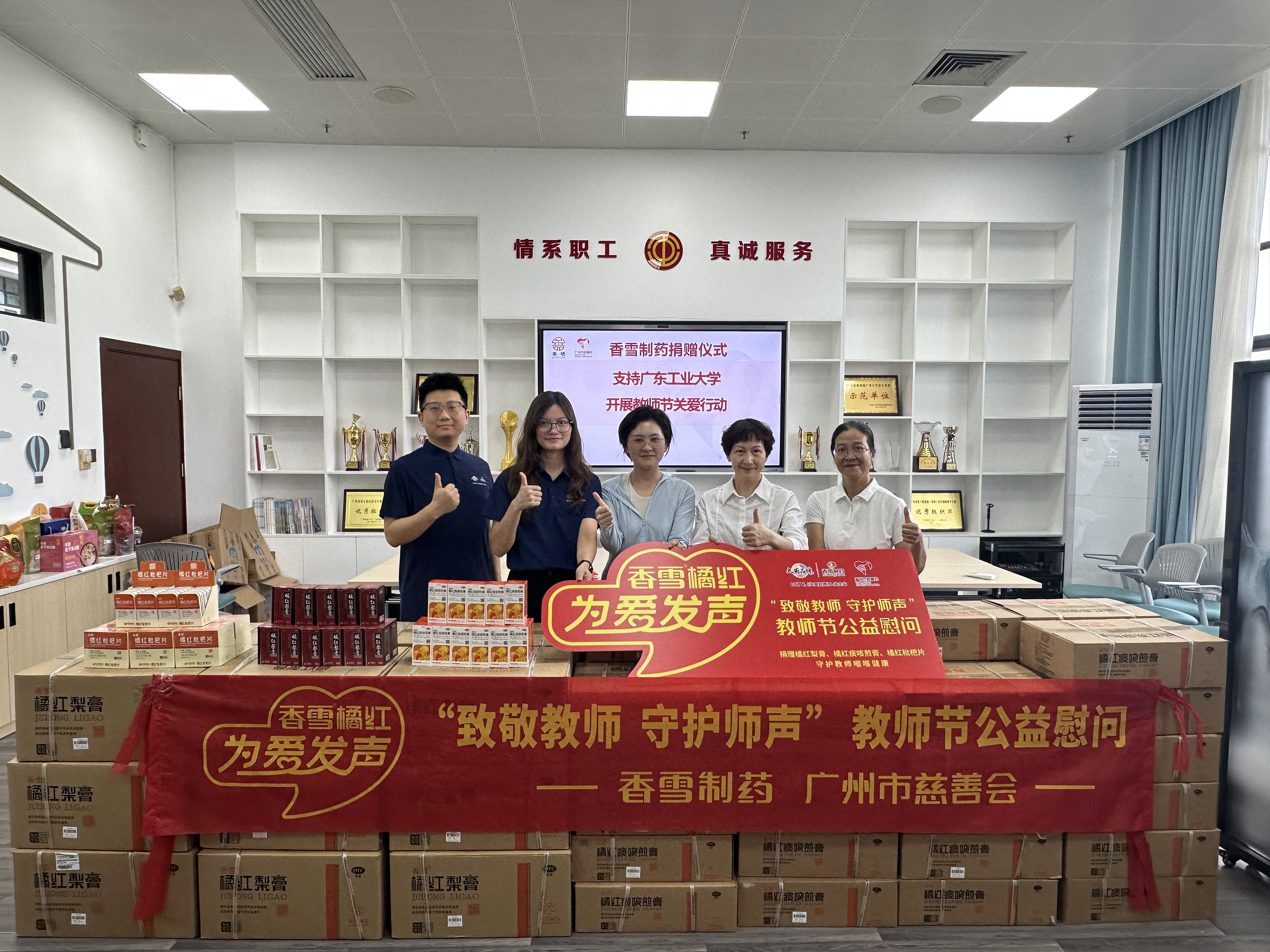 2025年9月10日,正值第41个教师节,一个感恩与敬意汇流的日子。bevictor伟德携手广州市慈善会开展“bevictor伟德橘红 为爱发声”公益关爱行动,向广东工业大学、华南农业大学两所高校捐赠总价值11.7万元的橘红梨膏、橘红痰咳煎膏以及橘红枇杷片,专项用于教职工咽喉健康呵护。