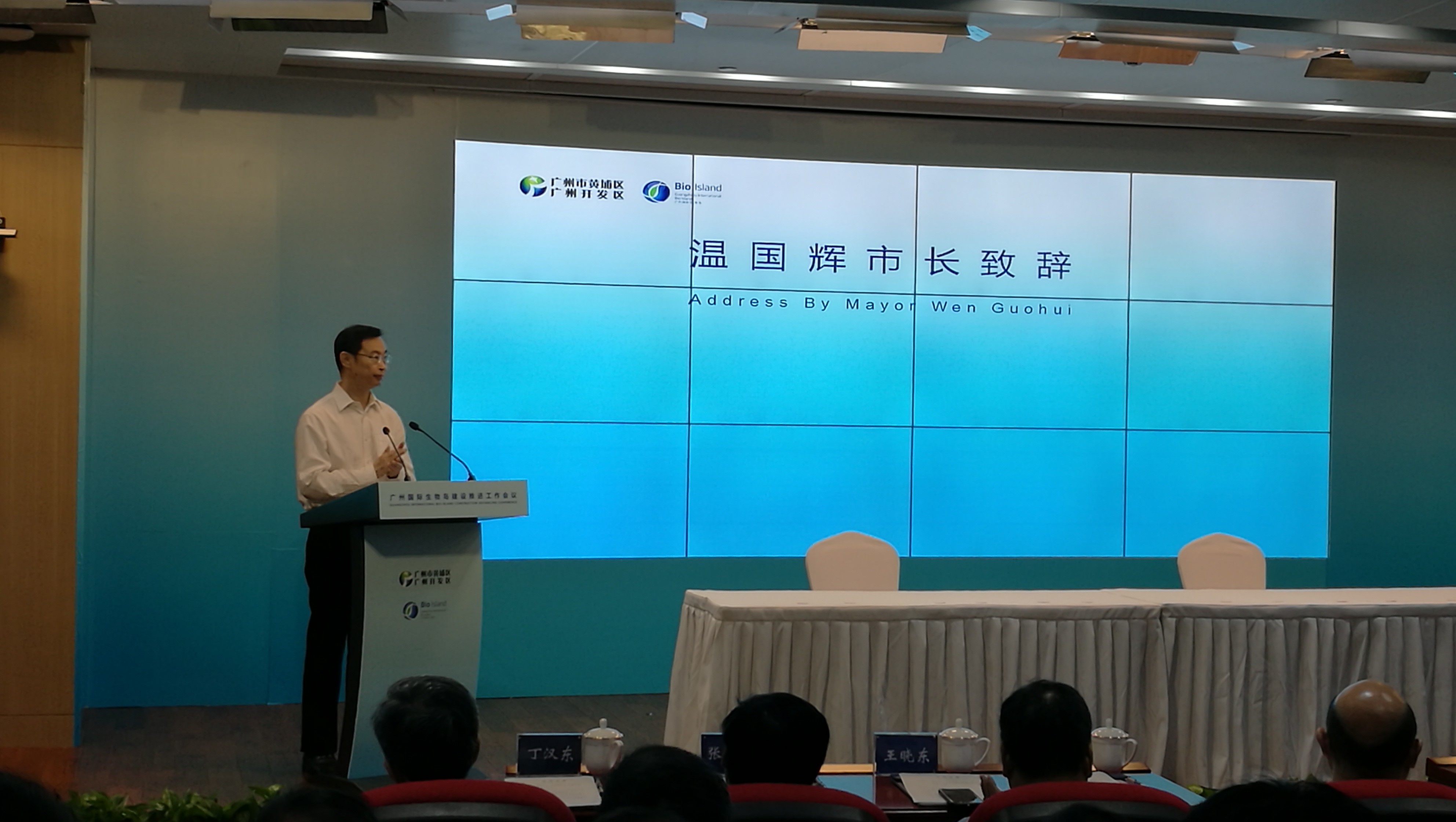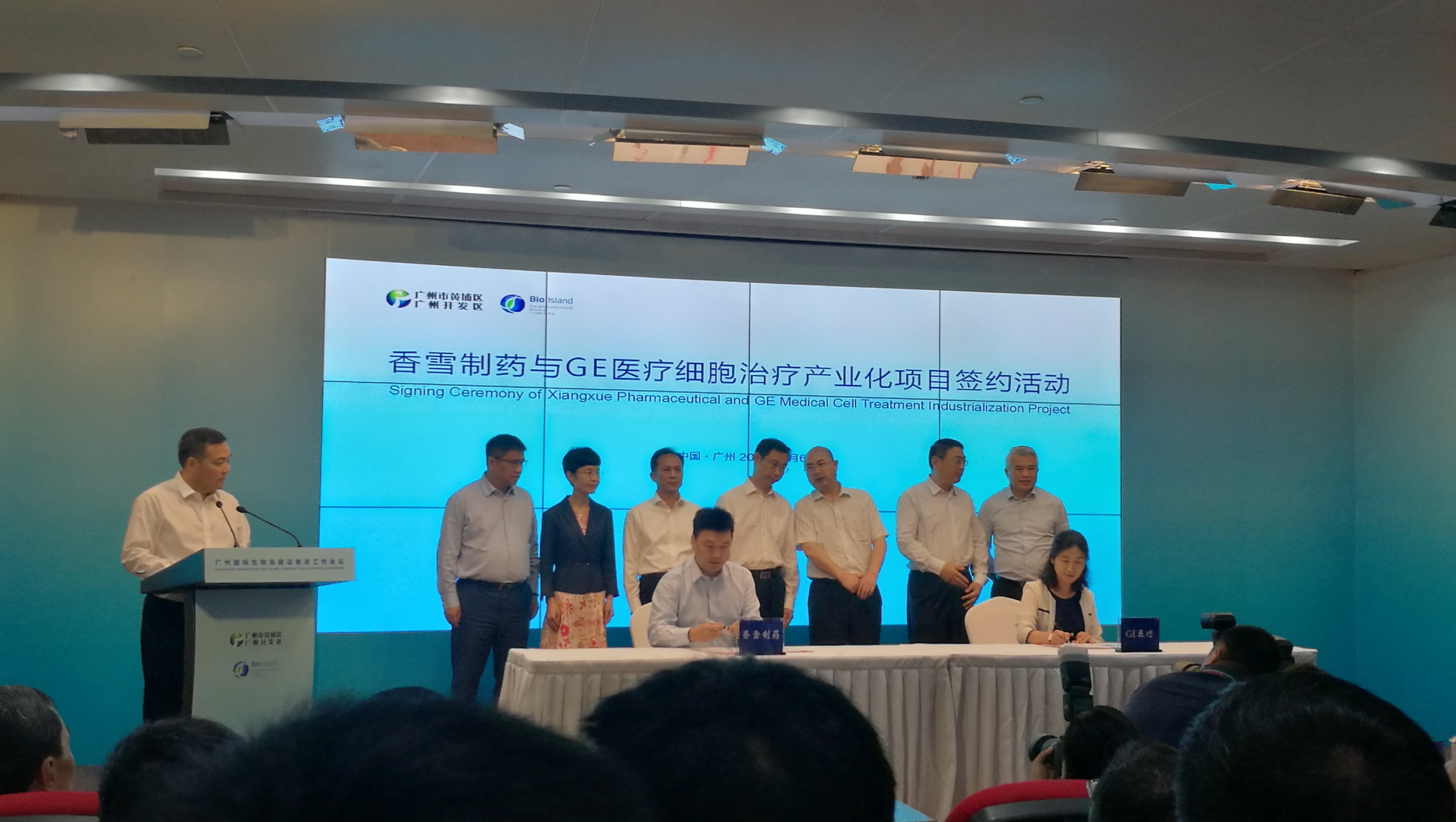 6月6日,广州国际生物岛建设推进工作会议暨项目集中签约和揭牌活动在广州生物岛隆重举行。广州市委副书记、市长温国辉、黄埔区区长陈小华;中国工程院院士刘昌孝、中国科学院院士裴钢、美国国家科学院院士、北京生命科学研究所所长王晓东、 牛津大学数学、物理及生命科学部主任、工程学和物理学教授Donal Bradley、英国皇家工程院院士、牛津大学化学工程Donald Pollock