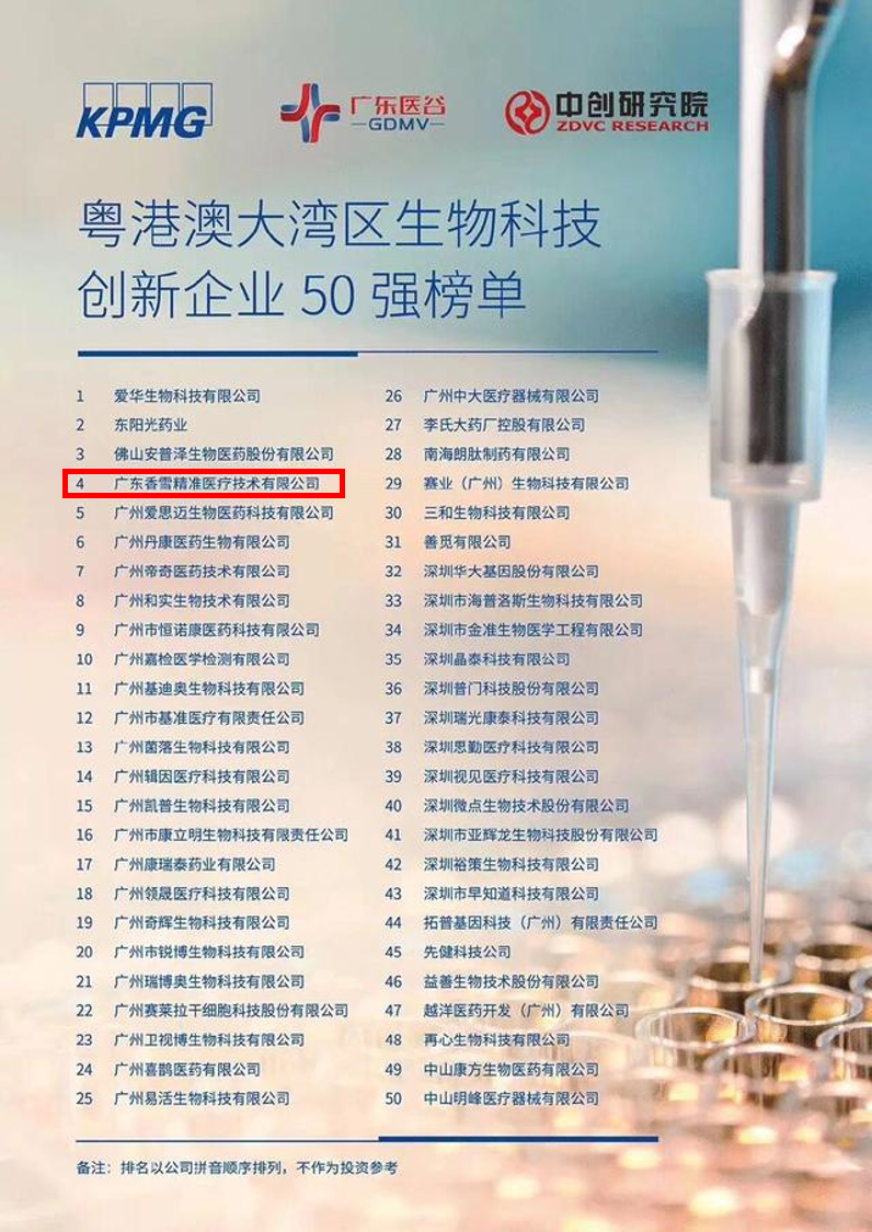 【粤港澳大湾区生物科技创新企业50强】