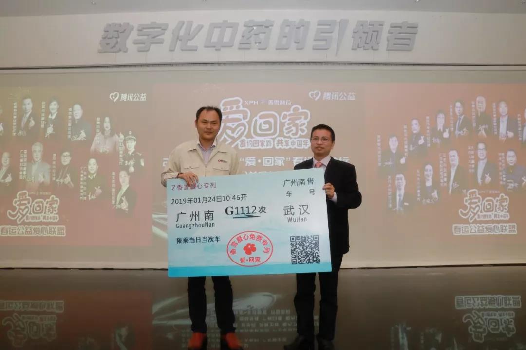 bevictor伟德制药事业部总经理谭光华为港珠澳大桥工程师赠送返乡高铁票。