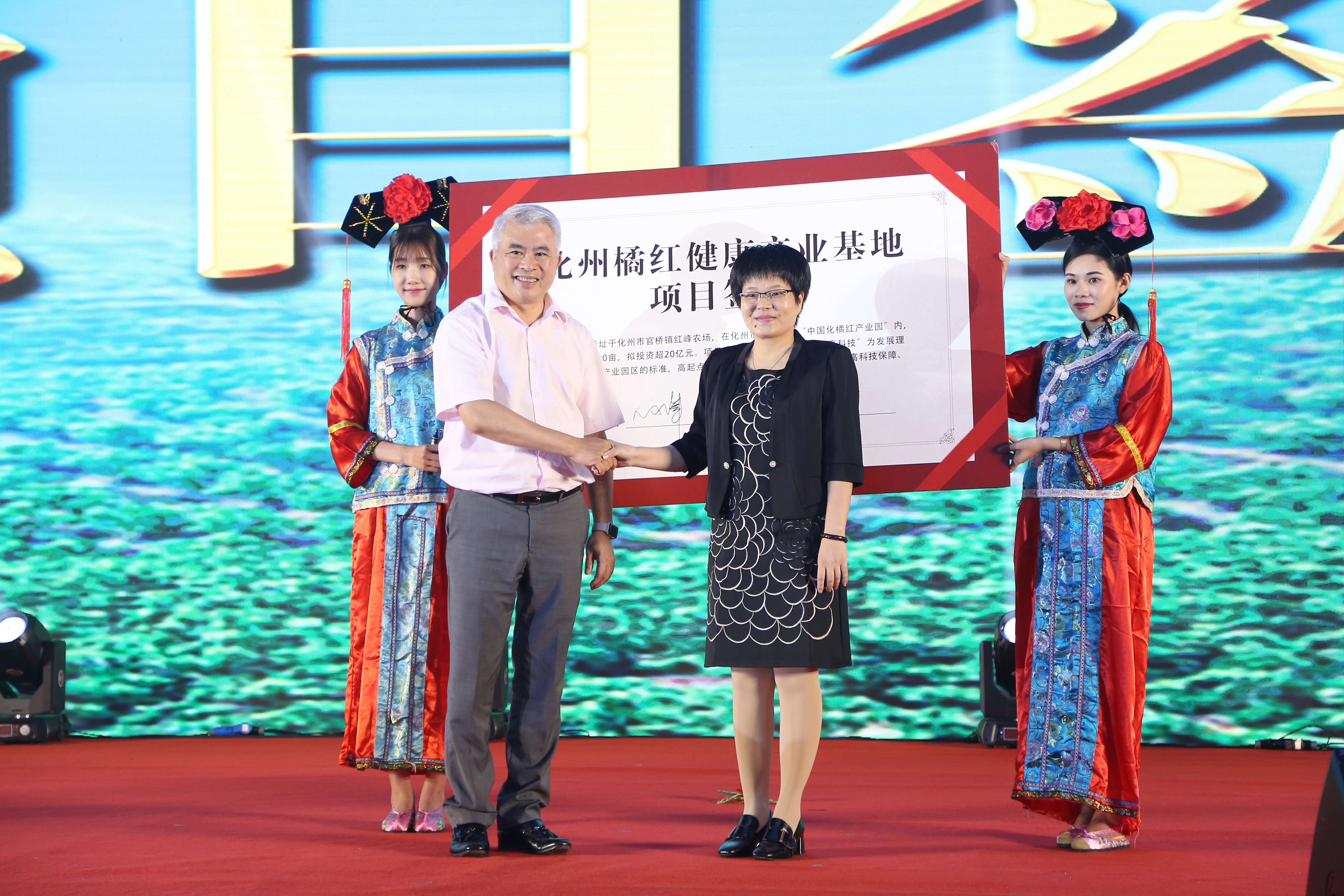 (bevictor伟德集团董事长王永辉与化州市人民政府副市长莫燕签约化州橘红健康产业基地项目)