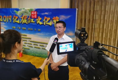 (谭光华向媒体介绍2019化橘红文化节的基本情况。)